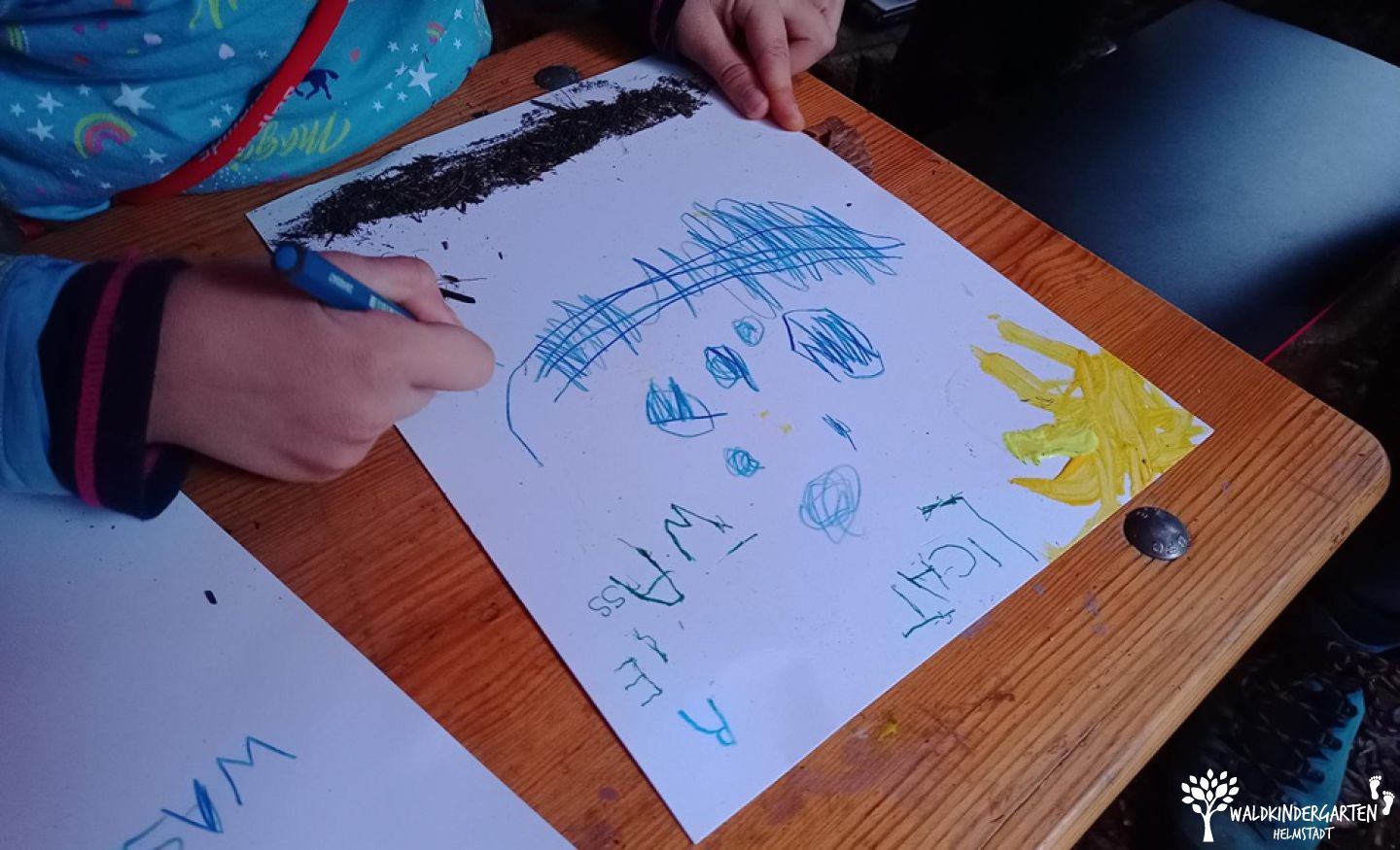 Am Freitag, den 18.07.2025, fand - leider aufgrund einer Windwarnung erst zwei Tage später als geplant - unsere Vernissage im Waldkindergarten statt. Unsere kleinen Künstler präsentierten eine Vielzahl von Kunstwerken, die mit unterschiedlichen Methoden gestaltet wurden. Das Wetter war schön und einladend, sodass viele Besucher die Gelegenheit nutzten, die kreativen Werke zu bewundern. Für das leibliche Wohl sorgten selbst hergestellte Kräuterlimo und leckere Snacks, die bei den Gästen gut ankamen. Es war ein gelungener Tag voller Kreativität, Gemeinschaft und Freude!