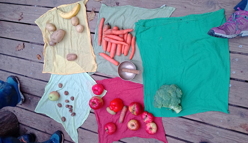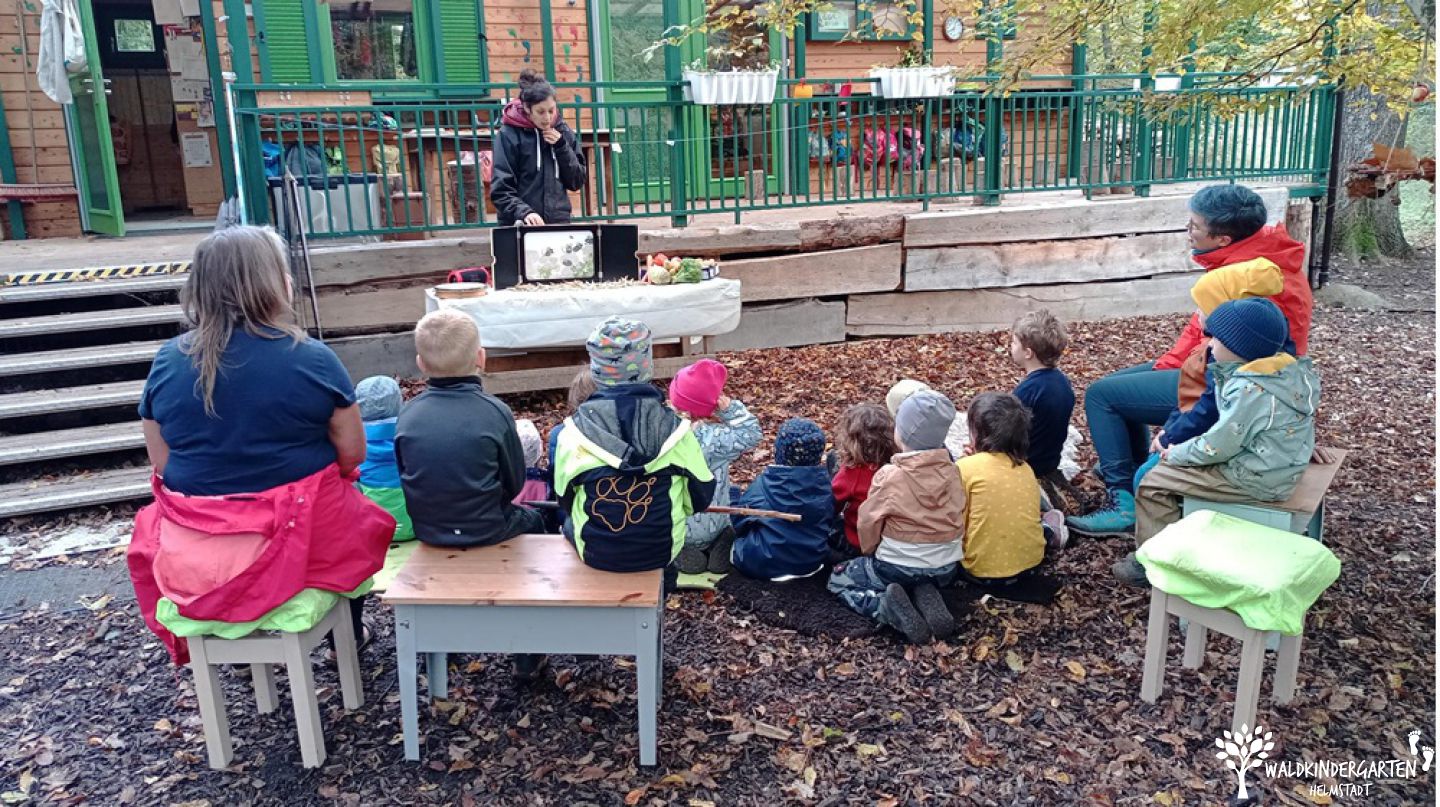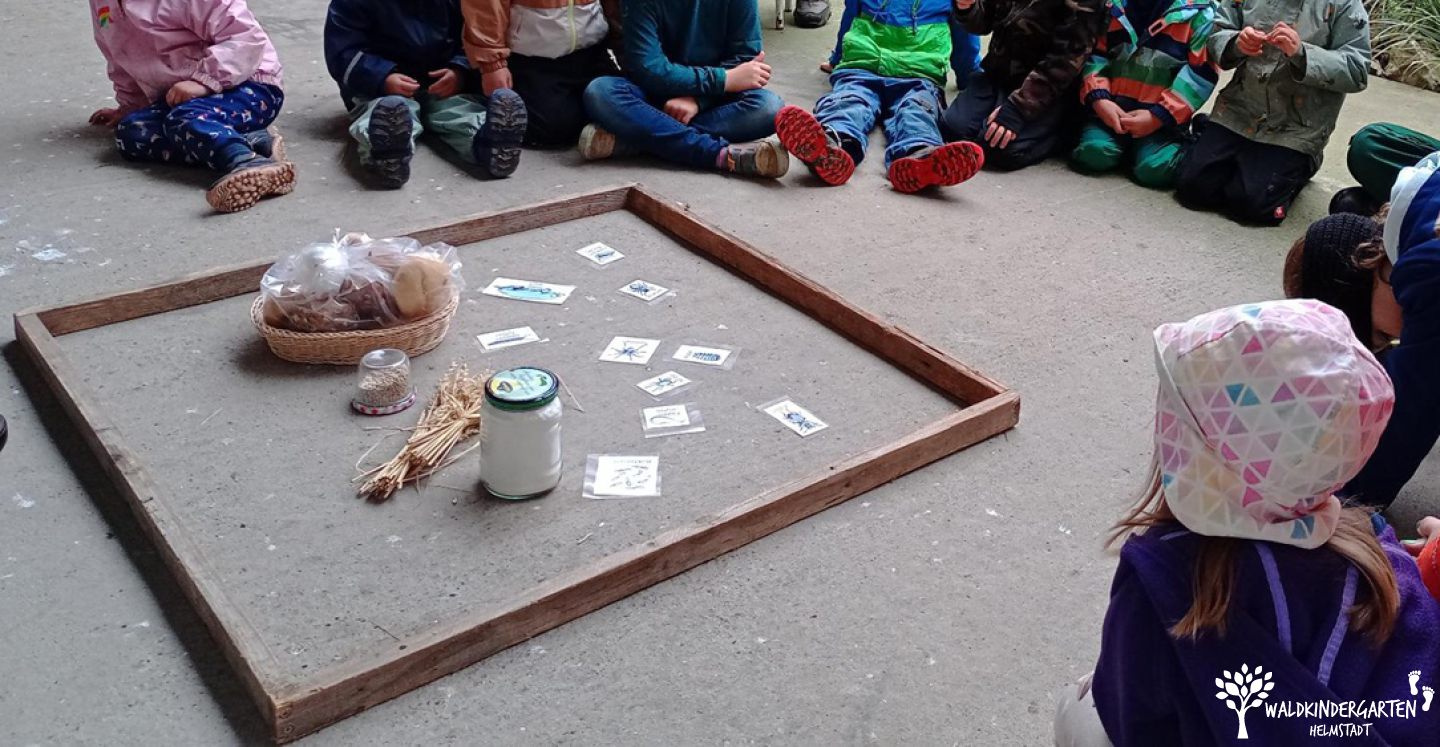 Vom 29. September bis 13. Oktober stand bei uns im Wald alles im Zeichen von Getreide und Erntedank. Gemeinsam entdeckten wir die vollen Felder und Apfelbäume auf unseren Entdeckertouren und beschäftigten uns damit, was eine Pflanze zum Wachsen braucht. Unsere Vorschüler fanden heraus: Licht, Luft, Erde und Wasser sind entscheidend. Außerdem nahmen wir einen Apfel ganz genau unter die Lupe – vom Fruchtfleisch bis zu den kleinen Kernen in ihren „Stübchen“.